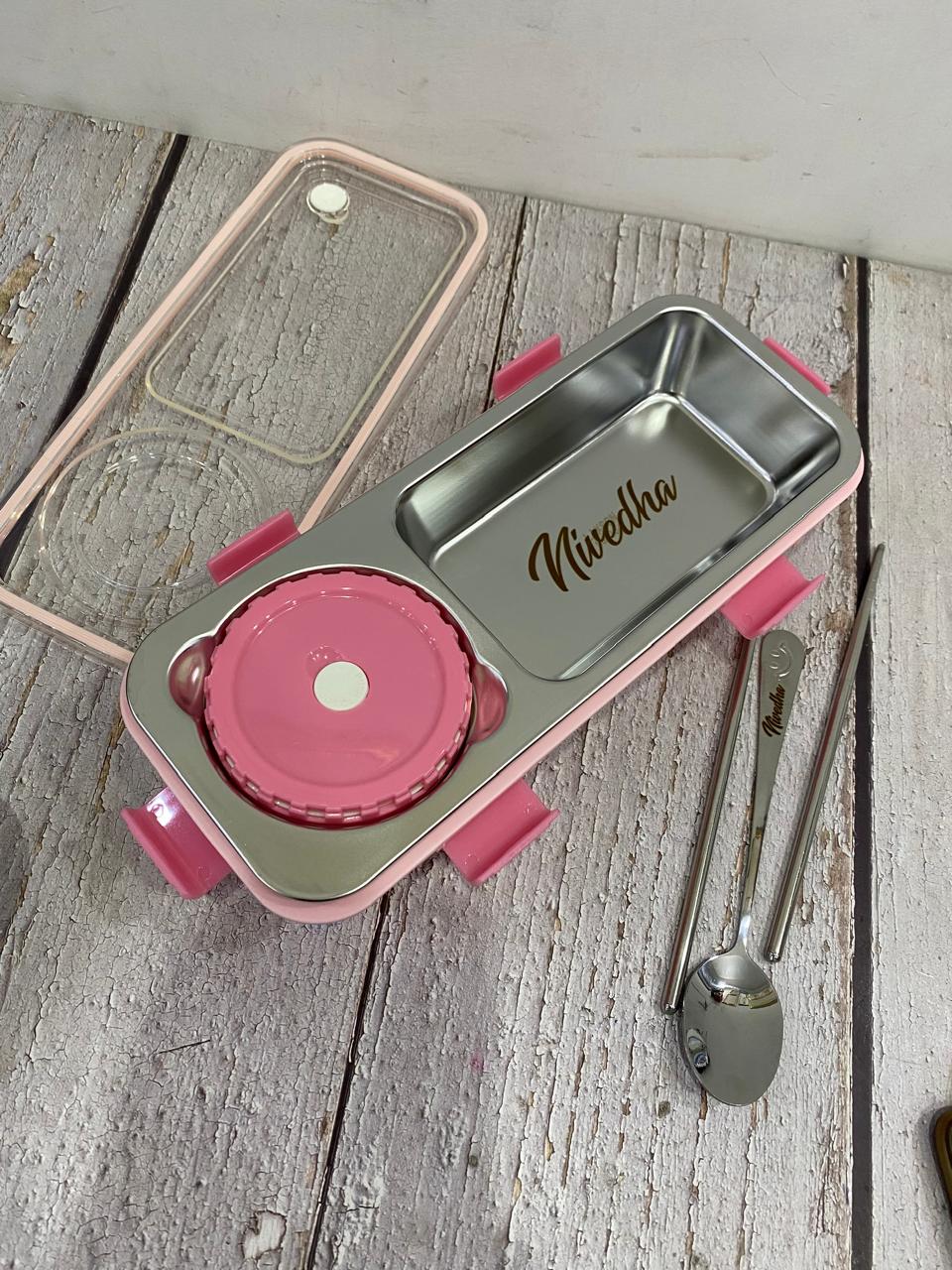 Personalized 2 Grid Sleek Bento Lunch Box (Stainless Steel)